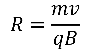 R - радиус траектории, по которому движется частица (м)
