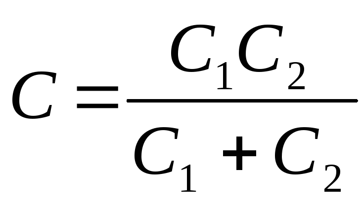Электроёмкость при последовательно соединении (для двух конденсаторов):