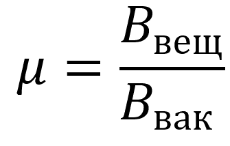 Bвак - магнитная индукция в вакуме (Тл)