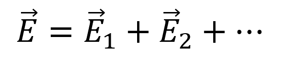 Е1,Е2,… — напряжённости отдельных электрических полей, создаваемых разными зарядами или источниками.